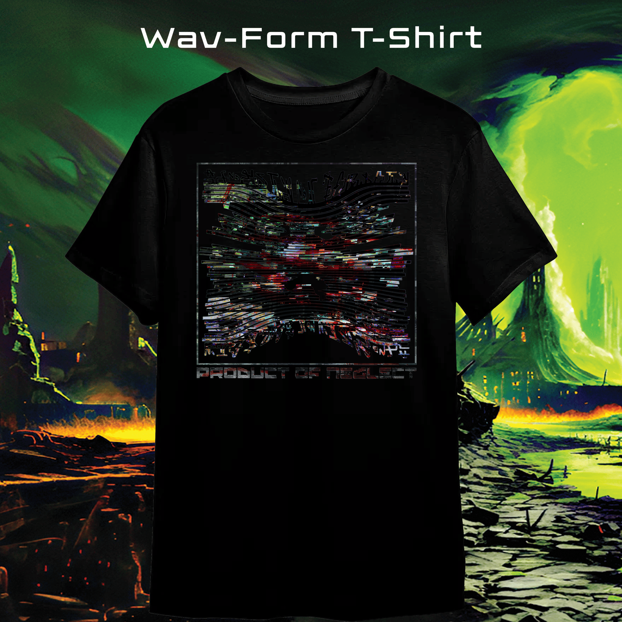 A T-Shirt with Product of Neglect text and Jeff the Wav-Form God